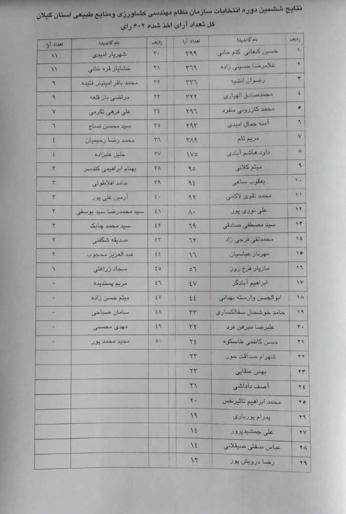 نتایج و تعداد آرا منتخبین بدین ترتیب است: