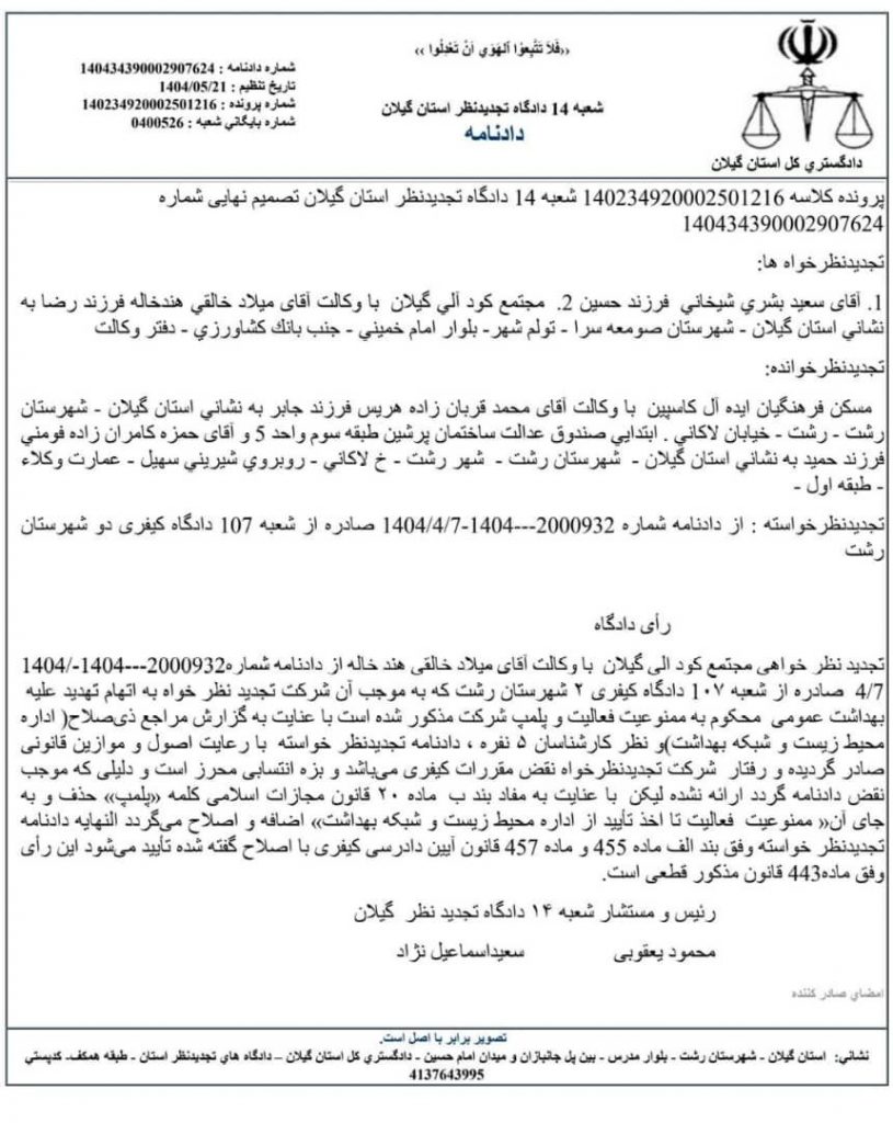 «با عنایت به تخصص، تعهد، شایستگی و تجربیات ارزشمند جنابعالی، بهموجب این ابلاغ، بهعنوان سرپرست اداره کل ارتباطات و فناوری اطلاعات استان گیلان منصوب میشوید.امید است با اتکال به خداوند متعال، با در نظر گرفتن شرایط و مقررات قانونی، بالندگی و سیاستهای ابلاغی وزارت مطبوع، در انجام وظایف محوله و در راستای تحقق اهداف دولت محترم مردمی، موفق و مؤید باشید.»